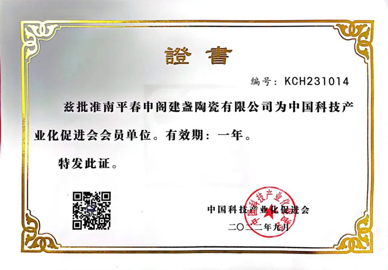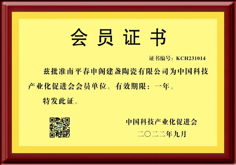 2022年9月,北京中科百创技术咨询服务中心和南平春申阁建盏陶瓷有限公司分别正式成为中国科技产业化促进会常务理事单位和会员单位。