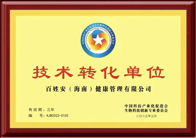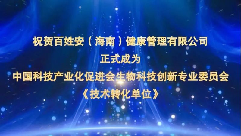 祝贺百姓安健康正式成为中国科技产业化促进会生物科技创新专业委员会《技术转化单位》